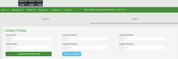 Al igual que el Catalogó de Flotillas, usted podrá modificar los limites en la columna Editar siempre