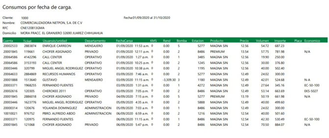 Ventas por Estación: Podrá revisar y/o imprimir los consumos de sus Flotillas en cada Estación especificando el monto en litros, importe que consumió y el número de cargas que realizó.