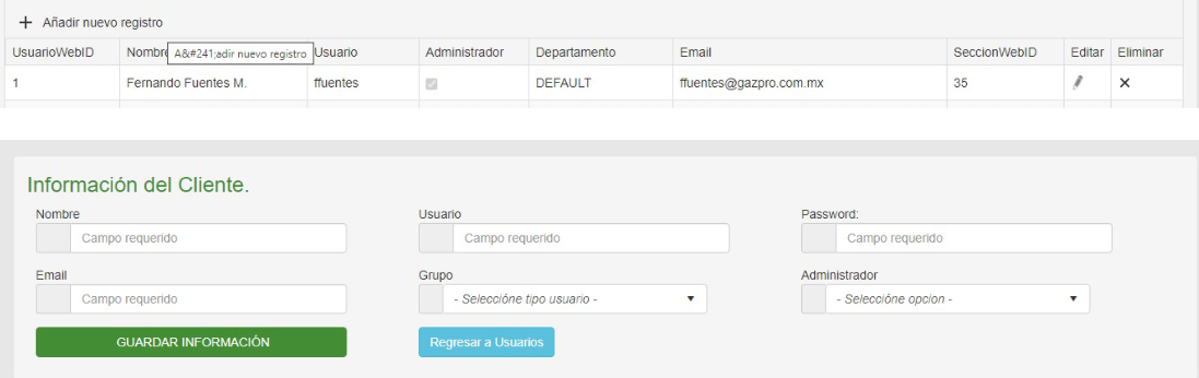 Para agregar un usuario, haz clic en "Añadir nuevo registro" y completa los campos requeridos.