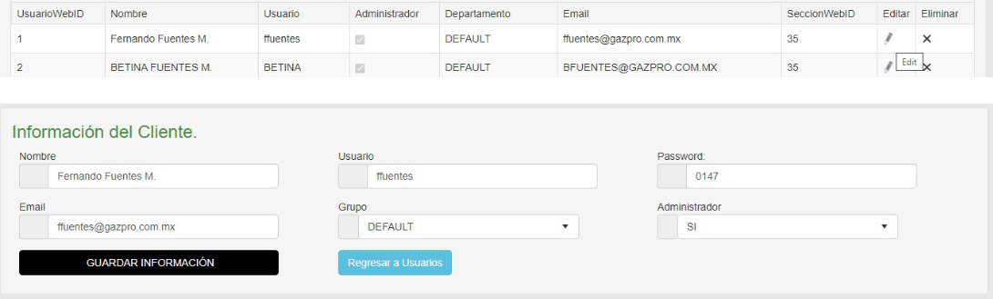 - Terminada la modificación continuará visualizando todos los Usuarios y editar otros si así lo desea.
