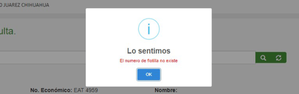 - En caso de que el numeró Flotilla o económico sea inexistente, se mostrara un mensaje